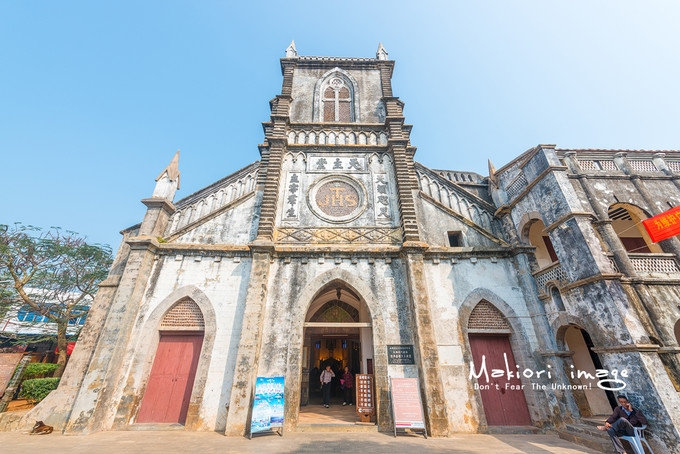 圣母堂外墻斑駁滄桑,內部卻非常整潔而寧靜,還擁有一個樸實的小庭院,這些也是不少游客喜歡來此取景拍照的原因。天主教堂是潿洲島上的天主教堂位于潿洲島東北部的盛塘村,村中80%的人信奉天主教。