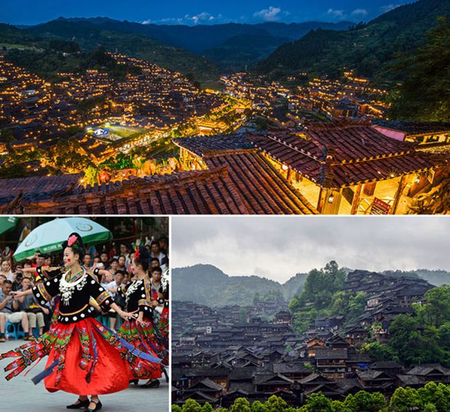 2,千戶苗寨——"西江千戶苗寨由十余個依山而建的自然村寨相連成片,是目前中國乃至全世界最大的苗族聚居村寨。