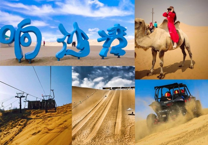 day3:響沙灣:這里因沙子會(huì)唱歌而蜚聲中外,景區(qū)內(nèi)的游玩項(xiàng)目眾多,就像一個(gè)沙漠大型游樂(lè)園一樣,在這里你可以盡情體驗(yàn)各種刺激和浪漫的沙漠娛樂(lè)項(xiàng)目。景區(qū)除傳統(tǒng)的騎馬、騎駱駝、篝火晚會(huì)、沙漠探險(xiǎn)等沙漠旅游活動(dòng)外,還新引進(jìn)了沙漠滑翔傘、沙漠太空球、沙漠沖浪車等一系列