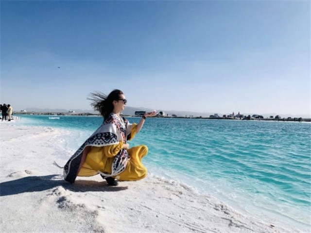 小北還給我們對規劃了一個翡翠湖,完全不比茶卡鹽湖差,而且人少很多,形態迥異、深淺不一的鹽池宛如一塊塊晶瑩剔透的“翡翠”,站在湖邊,宛若鏡面般的湖面倒映著藍天白云,皚皚雪峰,宛如仙境。在這里,根本不用刻意挑選角度,隨意一坐,自有意境!中國的另一個天空之鏡,分分鐘刷爆朋友圈!