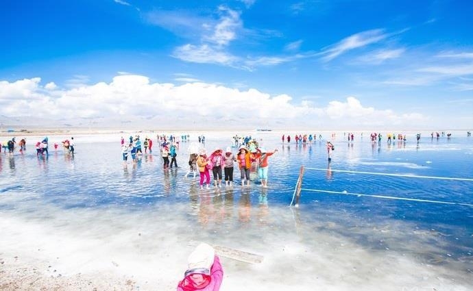 茶卡鹽湖位于海西州烏蘭縣茶卡鎮附近,也稱茶卡,藏語意為鹽池,自古就以盛產“大青鹽”而著稱。茶卡鹽湖在晴天時湖水結晶度很高,可以看到潔白的鹽湖上覆蓋一層薄薄的鹵水,景色和倒影清晰又純凈,猶如天空之境。