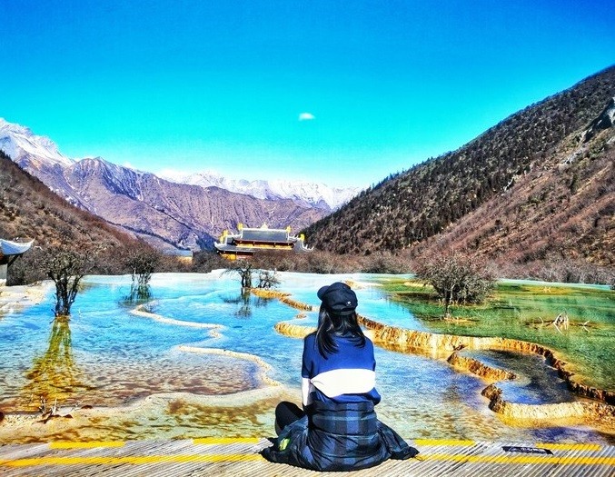 "人間瑤池"黃龍海拔比較高,溫度會(huì)更低些,景點(diǎn)主要都集中在黃龍溝,五彩池的水都是從一條溝流出來的,因?yàn)槔锩嬗胸S富的礦物質(zhì),所以會(huì)呈現(xiàn)出不一樣的顏色,但五彩池的顏色卻也不止五種。下山途中也有很多美景,運(yùn)氣好還能看到不怕人的小松鼠。
