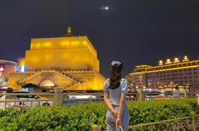 3.鐘鼓樓:鐘樓、鼓樓、回民街三個景點挨在一起,打卡起來特別方便。登鐘樓需要從地下通道過去,購買套票的話需要注意時間,鐘鼓樓都是晚8點30分左右關門,鐘樓遠眺夜景不錯,不過人群熙熙攘攘,拍照要注意安全。