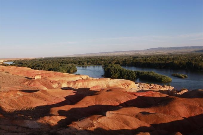 五彩灘位于新疆布爾津縣城西北24公里處的額爾齊斯河北岸,是一個以雅丹地貌著稱的河灘。這里的丘陵地質奇特,顯示出多種色彩,每到傍晚夕陽照耀時,顏色絢爛奇幻,非常壯觀。
